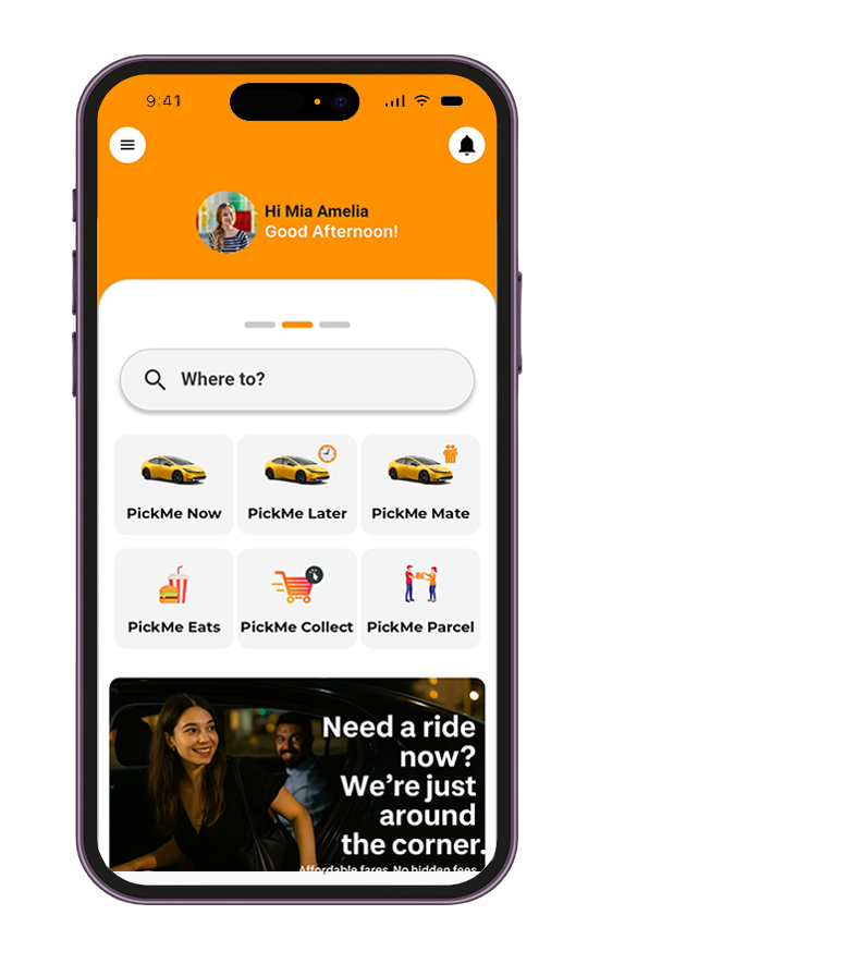 Book now or schedule ahead. Whether it’s an early flight, a school drop-off, a hospital appointment or a night out, PickMe Now gets you there.